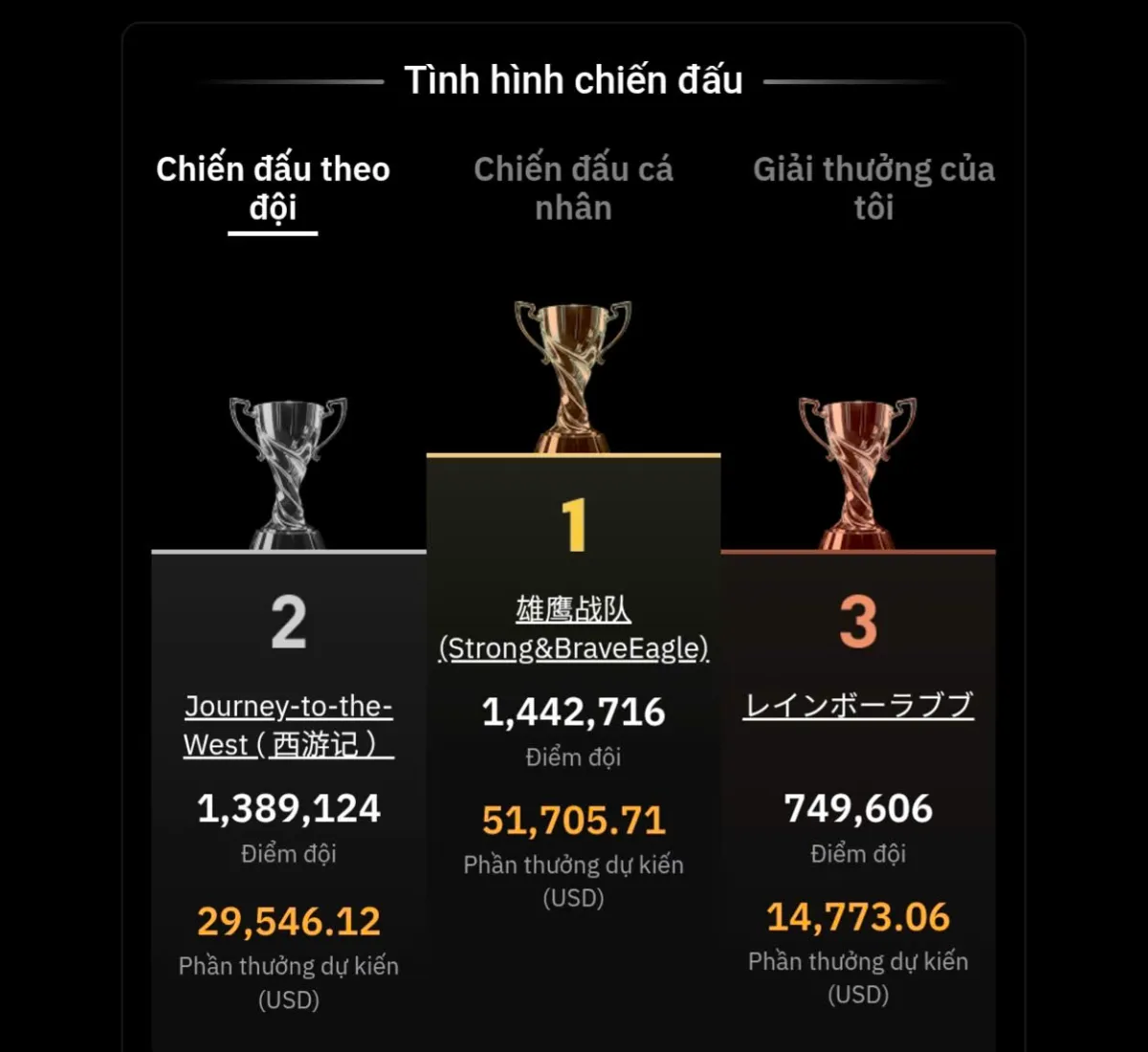Sau khi nhận thưởng thủ công, người dùng có thể kiểm tra trạng thái tại mục “Giải thưởng của tôi” trên hệ thống BitradeX.